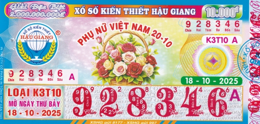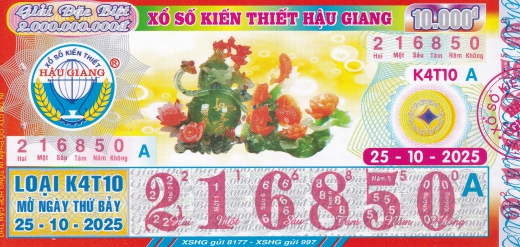 Thông báo kết quả kỳ vé K2T10 mở thưởng ngày 11/10/2025. Giải đặc biệt trúng thưởng tại tỉnh An Giang được phát hành tại đại lý vé số cấp 1 - Trương Phến của Công ty.